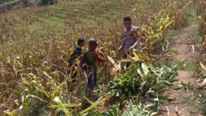 Bhabinkamtibmas Polsek Malua Desa Buntu Batuan BRIPKA Ibrahim mengikuti giat panen jagung anggota kelompok tani Remaja Desa Buntu Batuan Kec. Malua Kab. Enrekang, Pada hari senin tanggal 13 April 2026 Pukul 09.00 wita.
