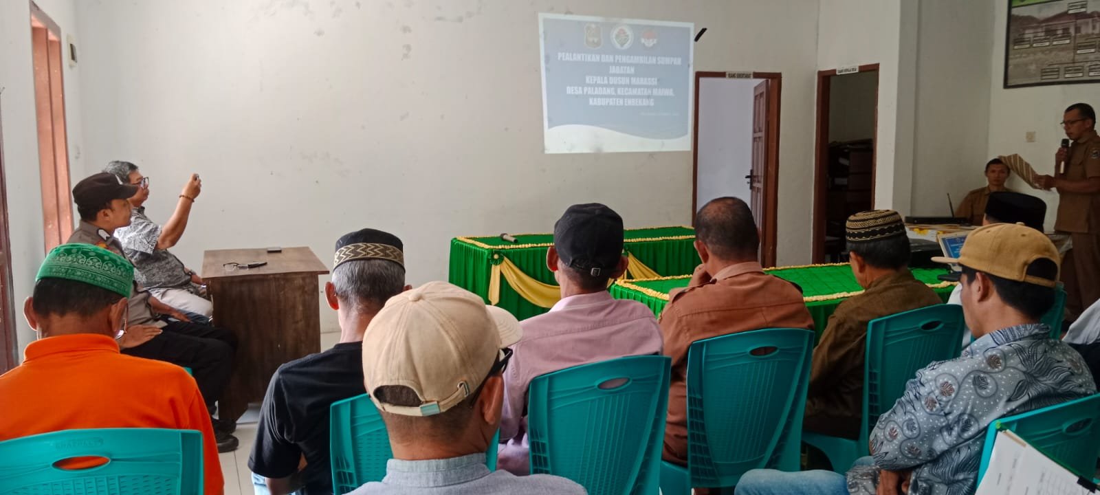 Pelantikan dan pengambilan sumpah jabatan ini merupakan bagian dari proses penyelenggaraan pemerintahan desa dalam rangka mengisi jabatan Kepala Dusun Marassi guna mendukung kelancaran pelayanan kepada masyarakat serta meningkatkan kinerja pemerintahan desa.