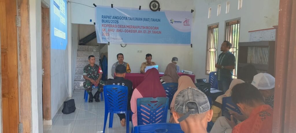 Polresenrekang.Com Kegiata Rapat Koprasi Merah Putih yang dihadiri oleh Bhabinkamtibmas Polsek Enrekang Pada hari Selasa (17/03/2026) pukul 08.30 wita bertempat di Kantor Desa Rossoan Kec. Enrekang Kab. Enrekang.