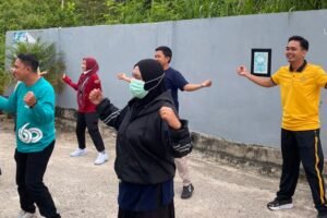 BHABINKAMTIBMAS POLSEK MALUA MENGIKUTI OLAH RAGA BERSAMA DENGAN PETUGAS PUSKESMAS MALUA KECAMATAN MALUA