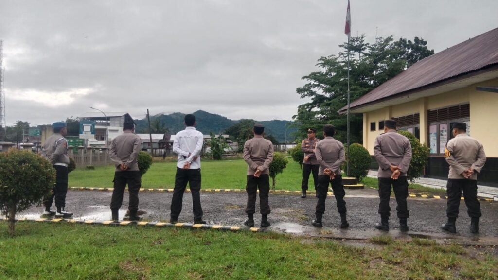Dikala Musim Penghujan Bukan Suatu Hambatan Bagi Personil Polsek Maiwa Untuk Melaksankan Apel Pagi