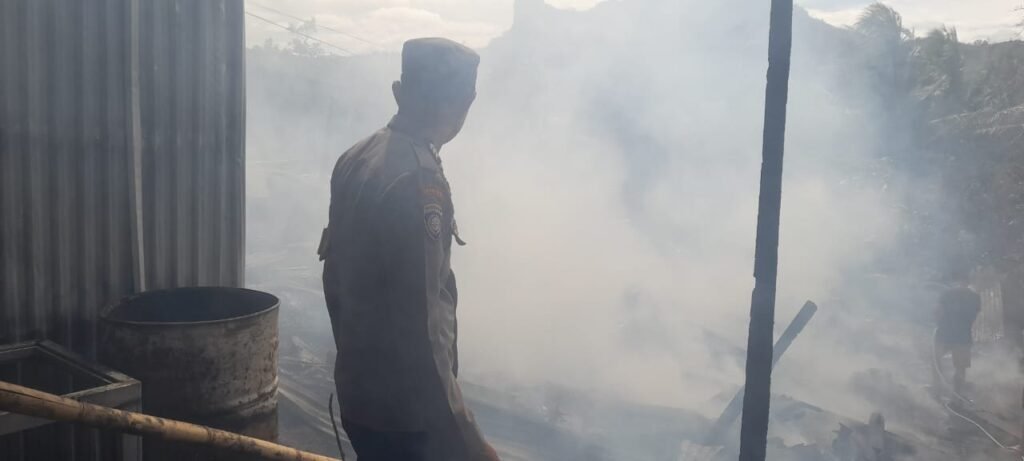 Polresenrekang.com–Kebakaran yang melanda dua unit rumah panggung/semi permanen milik warga berhasil dikendalikan berkat respons cepat personel Operasi Ketupat Pallawa 2026 Polres Enrekang bersama petugas pemadam kebakaran. di Kampung Baru, Kelurahan Lakawan, Kecamatan Anggeraja, Kabupaten Enrekang, Minggu (22/03/2026),