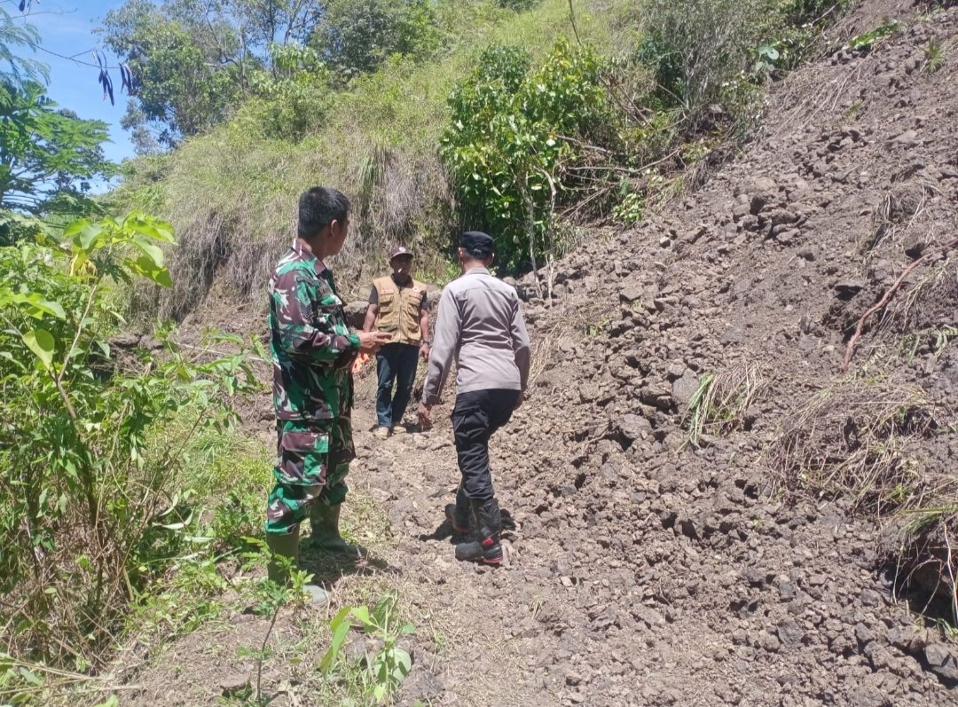 Kapolsek dan Bhabinkamtibmas Polsek Enrekang mendatangi Lokasi Tanah Longsor