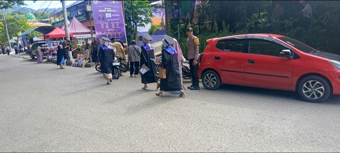 Kapolsek dan Personil Polsek Enrekang melaksanakan Pengamanan Kegiatan Wisuda Mahasiswa Universitas Muhammadiyah Enrekang