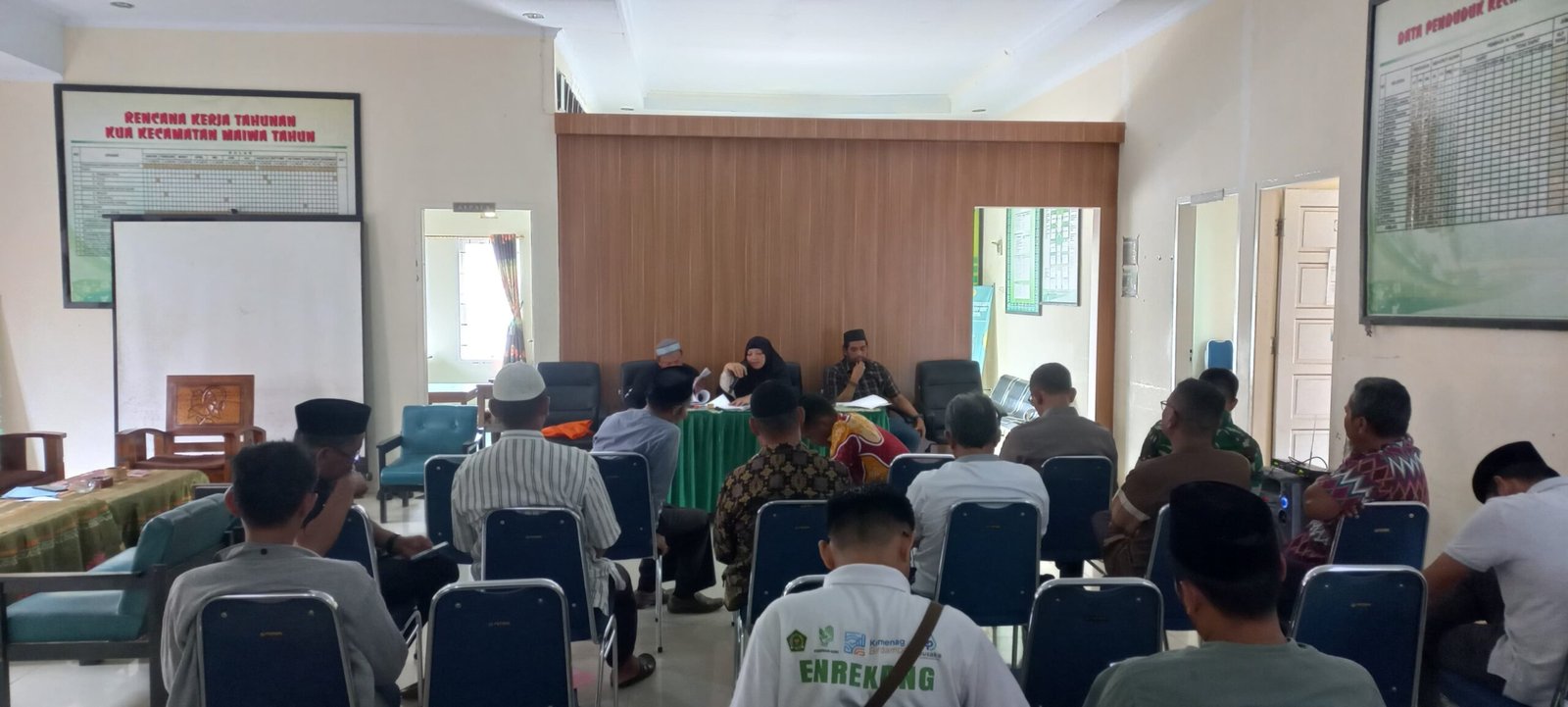 Polresenrekang.com – Kapolsek Maiwa IPTU Zainul Akbar, S.H menghadiri kegiatan Rapat Koordinasi Pemilihan Pengurus Baru Panitia Hari Besar Islam (PHBI) Kecamatan Maiwa yang dirangkaikan dengan rapat persiapan pelaksanaan Idul Fitri 1447 H Tahun 2026. Kegiatan tersebut berlangsung di Aula kantor Urusan Agama maroangin pada [Jumat, 20/2/26], dan dihadiri oleh PHBI Kec. Maiwa bersama Muspika, para kepala Lingkungan kel. Bangkala dan pengurus masjid se-kec maiwa. Dalam kegiatan tersebut, dilakukan pembahasan terkait mekanisme pemilihan dan penetapan pengurus baru PHBI Kecamatan Maiwa guna mendukung kelancaran pelaksanaan kegiatan keagamaan ke depan dan Laporan Pertanggung Jawaban Periode sebelumnya. Selain itu, rapat juga membahas berbagai persiapan menyambut Hari Raya Idul Fitri 1447 H/2026 M, termasuk teknis pelaksanaan Salat Id, pengamanan kegiatan malam takbiran, serta pengaturan arus lalu lintas.