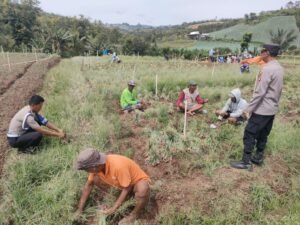 KAPOLSEK MALUA BERSAMA ANGGOTA LAKUKAN SAMBANG KUNJUNG DI LAHAN KEBUN BAWANG MERAH MILIK PETANI DUSUN BIAK DESA TALLUNG TONDOK KEC. MALUA
