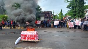 Dalam aksinya, masyarakat menyampaikan penolakan terhadap rencana tambang emas seluas kurang lebih 1.000 hektare. Mereka menilai kegiatan tersebut berpotensi merusak lingkungan, mengancam sumber air, serta mengganggu situs budaya yang berada di area rencana tambang.