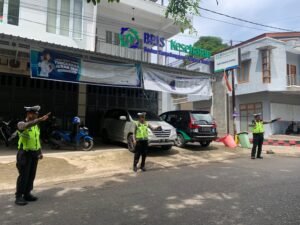 Sejak awal kegiatan, AKP Muh. Ali turun langsung ke lapangan untuk memastikan setiap titik pengamanan lalu lintas berjalan optimal.