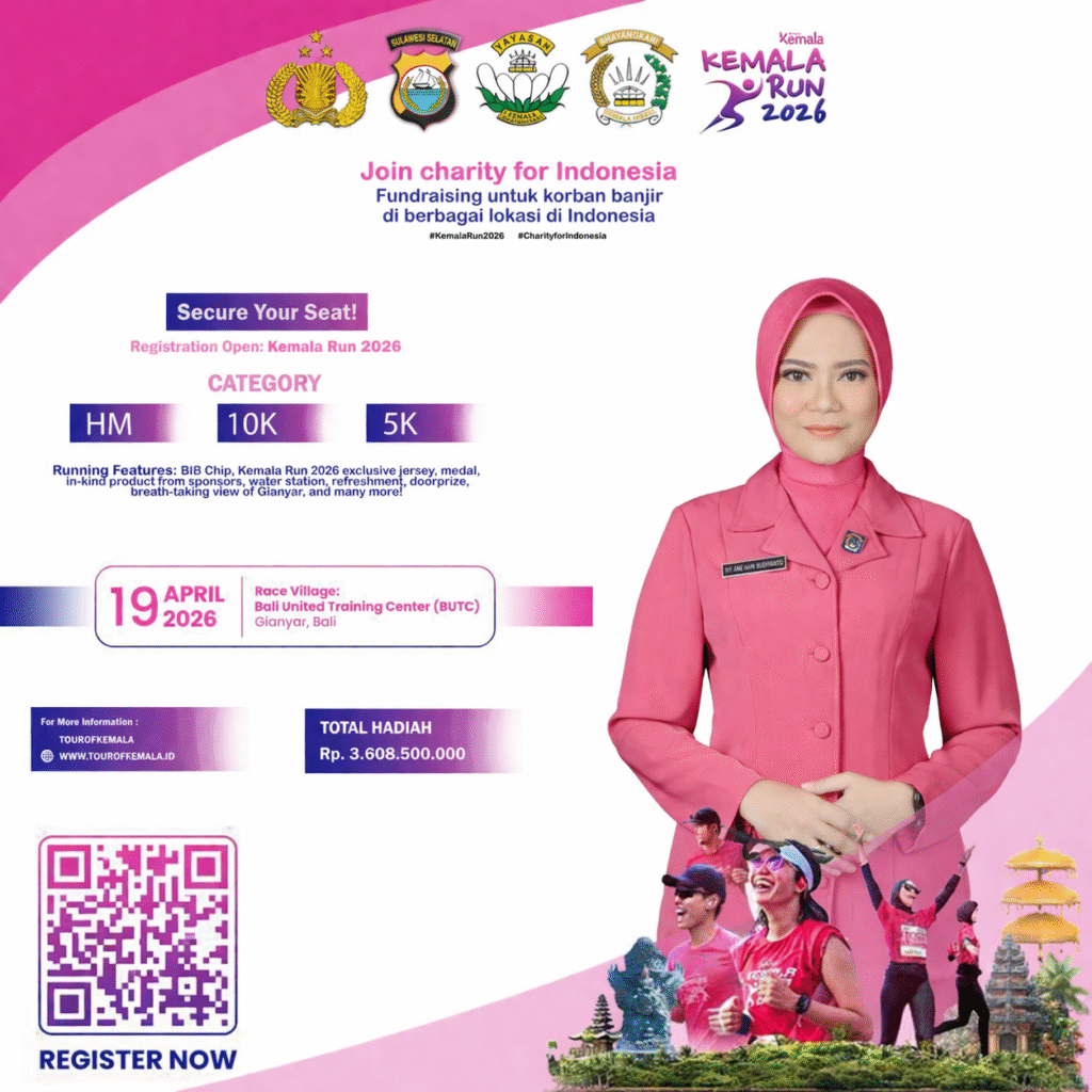 Polresenrekang.com–Semangat hidup sehat yang berpadu dengan kepedulian sosial kembali digaungkan melalui ajang Road to Kemala Run 2026 yang dijadwalkan berlangsung pada 19 April 2026 di Bali United Training Center. Kegiatan ini menjadi bagian dari gerakan nasional yang mengusung nilai kemanusiaan melalui olahraga lari.