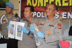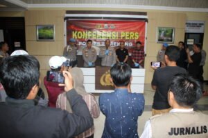 Konferensi pers dipimpin langsung oleh Kapolres Enrekang AKBP Hari Budiyanto, S.H., S.I.K., M.H., didampingi Kasat Reskrim AKP Herman, S.H., S.M., Kanit Pidum Iptu Fadly Fahrezi Konggoasa, S.Trk., serta Kasi Humas AKP Abd. Samad, S.H., M.H.