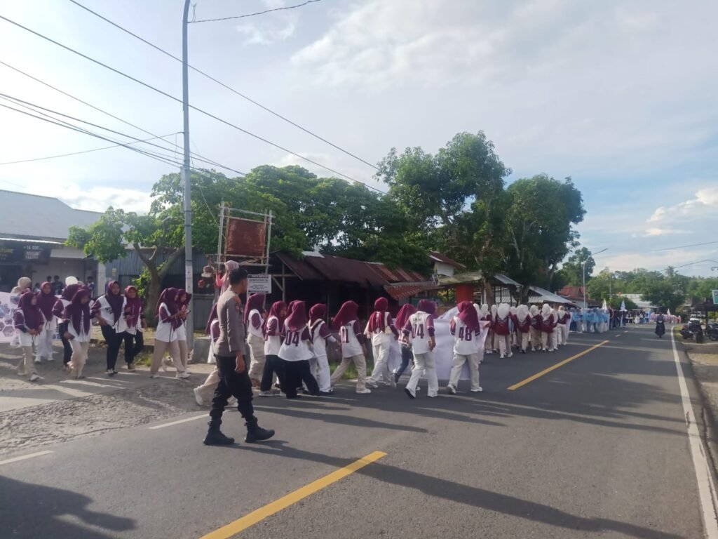 Polresenrekang.com – Personil Polsek Maiwa melaksanakan Pengamanan dan Pengawalan (Pamwal) terhadap kegiatan pawai pembukaan Pekan Olahraga dan Seni (Porseni) yang diikuti oleh siswa-siswi dari berbagai SMA Negeri 4 Enrekang di wilayah Maiwa, pada Senin (8/12/25).