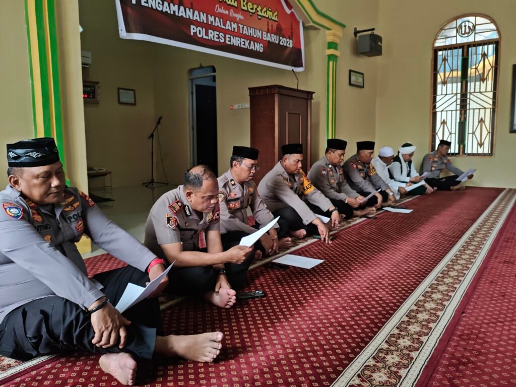 polresenrekang.com, Enrekang – Demi mewujudkan Kabupaten Enrekang yang aman, damai, dan kondusif menyambut tahun baru 2026, Kepolisian Resor Enrekang yang dipimpin oleh AKBP Hari Budiyanto, SH, S.IK, MH menggelar dzikir dan doa bersama di masjid Nurul Amanah Polres Enrekang, Rabu (31/12/25).
