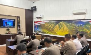 Kegiatan strategis ini diikuti secara langsung oleh Kapolres Enrekang AKBP Hari Budiyanto, S.H., S.I.K., M.H., didampingi Waka Polres Kompol Ali Maksun, S.Sos., M.M., serta seluruh Pejabat Utama Polres Enrekang dan para Kapolsek jajaran.