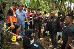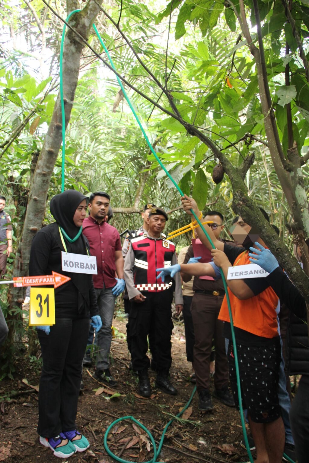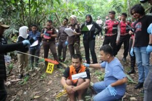 Kegiatan ini dilakukan langsung di Tempat Kejadian Perkara, yaitu di area kebun salak di lereng perbukitan Dusun Lintik, di mana sebelumnya korban SY ditemukan meninggal dunia dalam posisi tergantung.