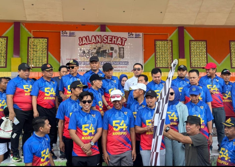 Agenda tersebut diawali dengan apel bersama, dilanjutkan dengan rute gerak jalan santai yang menyusuri sejumlah titik di pusat Kota Enrekang. Ribuan peserta dari unsur Forkopimda, ASN, jajaran instansi vertikal, hingga masyarakat umum turut memeriahkan kegiatan ini.
